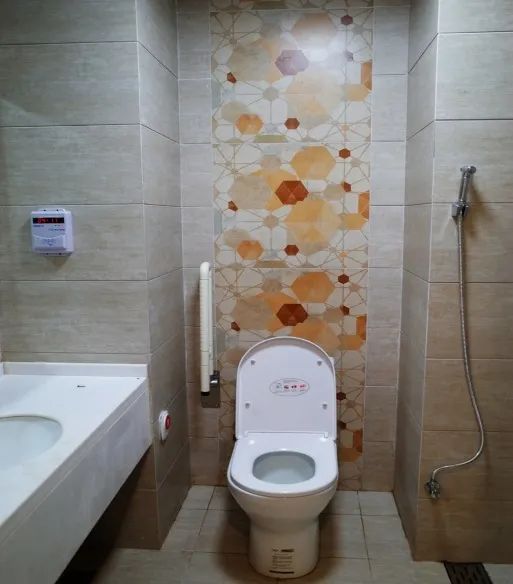 病區(qū)衛(wèi)生間采用干濕分區(qū),為了產(chǎn)婦、兒童的安全,淋浴間地面采用拉槽防滑處理,坐便器旁安置緊急呼叫按鈕。除此之外,還設(shè)置污洗龍頭,做到潔、污分開(kāi)。真正將人性化設(shè)計(jì)落到實(shí)處。